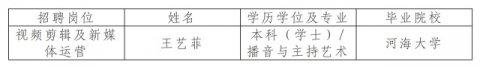 北京中水傳媒文化有限公司根據(jù)中國水利水電出版?zhèn)髅郊瘓F(tuán)招聘管理辦法和公司招聘實施方案,確定王藝菲為擬聘用人選,現(xiàn)予以公示。公示期間,如有問題,請向我司反映。